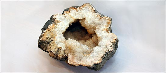 Geodes in the midwest form in sedimentary rock formations. Their size ranges from 1 inch to 2 feet in diameter. Dissolved silicates and carbonates find their way into hollow cavities in a rock. As the rock hardens, the minerals inside the cavity crystalize.